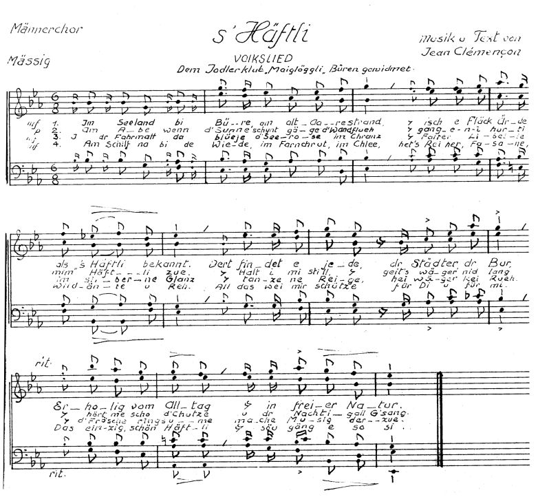 Das wunderschöne Jodellied "Ds Häftli" wurde von Jean Clémençon geschrieben. Der Komponist widmete das Stück dem Jodlerklub Meiglöggli Büren.